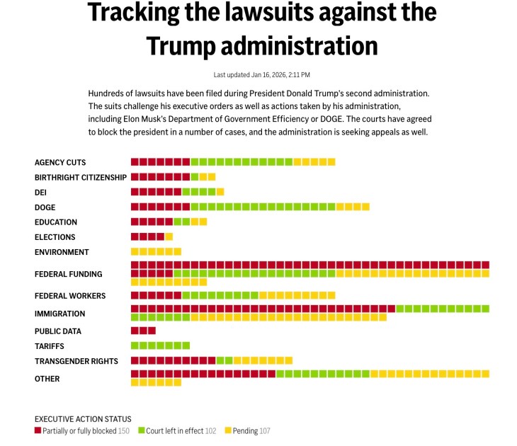 - hundreds of court cases against the administration.1